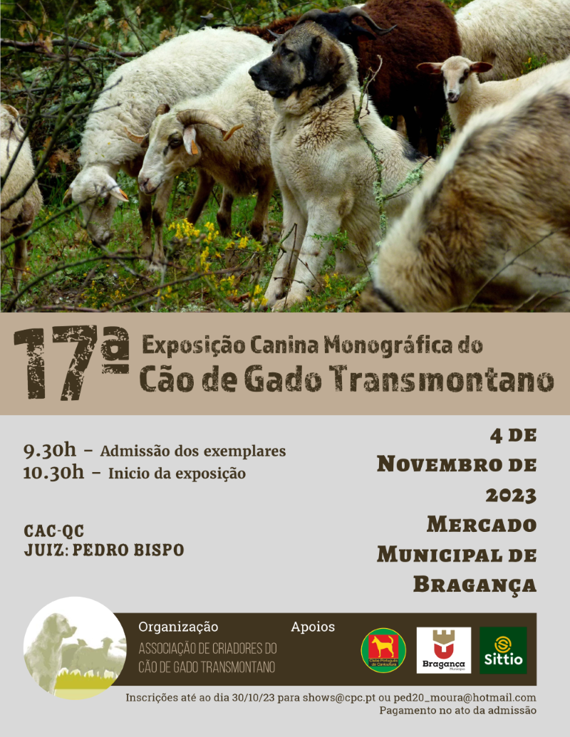 October 13, 2024 in Mogadouro, within the scope of the Gorazes fair, starting at 10 am, the Meeting of Breeders and Owners of Cão de Gado Transmontano de Mogadouro will take place (see attached poster in pdf) |